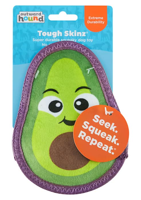 Outward Hound Tough Skinz Avocado Durable Squeaky Dog Toy, Small, Green