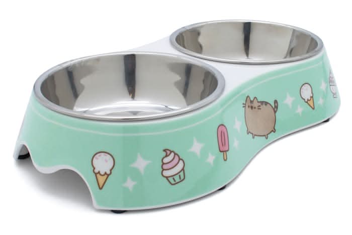 Double Bowl for food and water. Removable stainless steel bowls for easy cleaning. Melamine base. Features Pusheen and ice cream treats. Officially license, built by Culturefly. Size: 0.10 lb