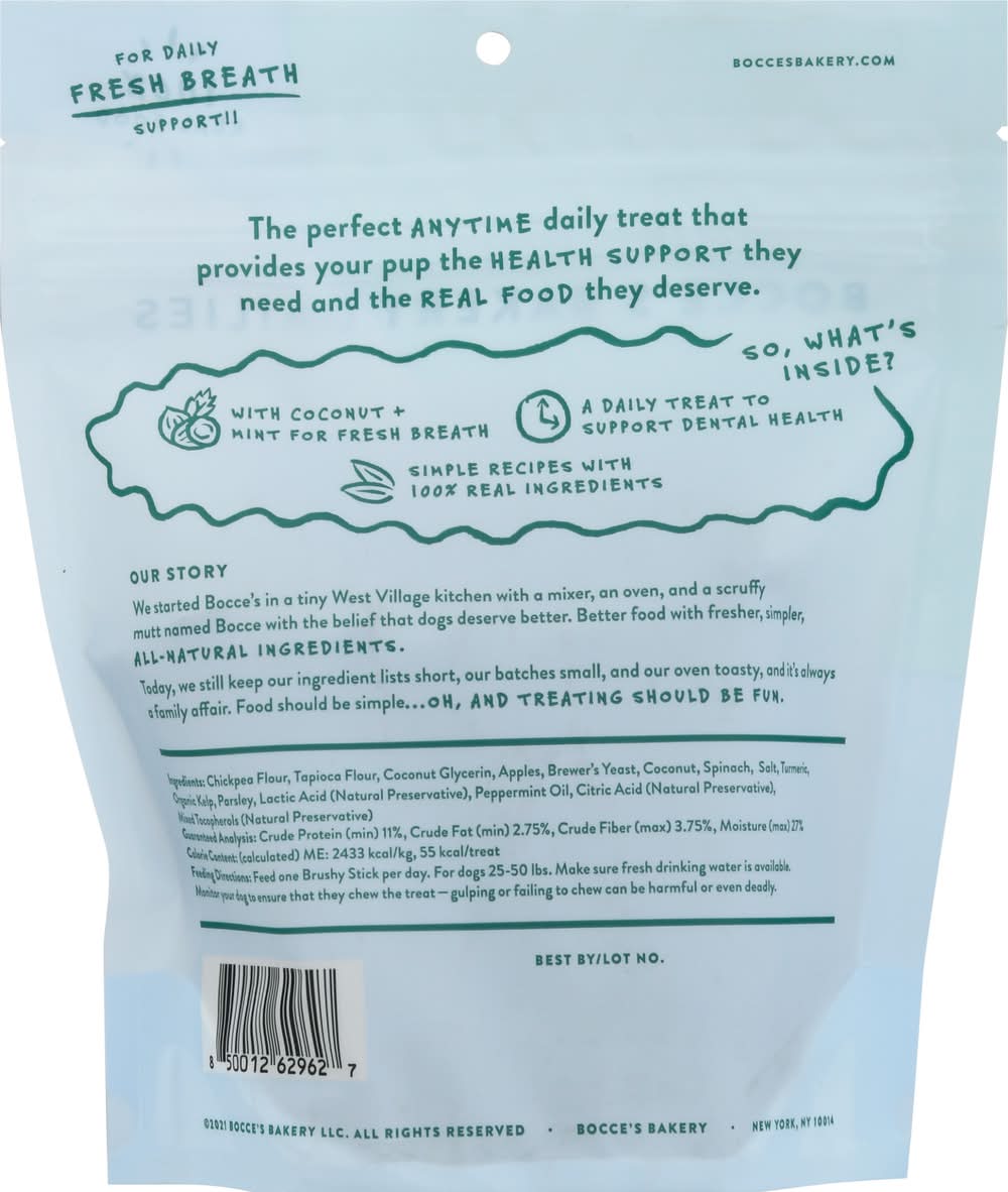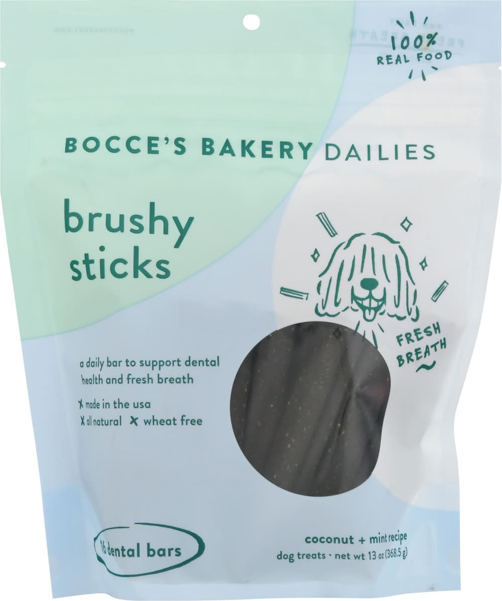 Bocce's Bakery Dailies Brushy Sticks Dental Bars, Coconut- Mint (13 oz, 16 ct)
