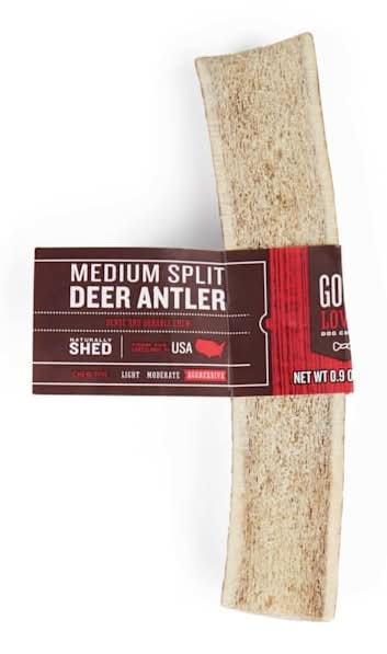 The Good Lovin' Naturally Shed Split Deer Antler Dog Chew offers strong chewers a more challenging texture to gnaw on. Straight from the USA grasslands, this dense and durable chew also offers no splintering so you confidently reward your pup. Size: 0.06 lb