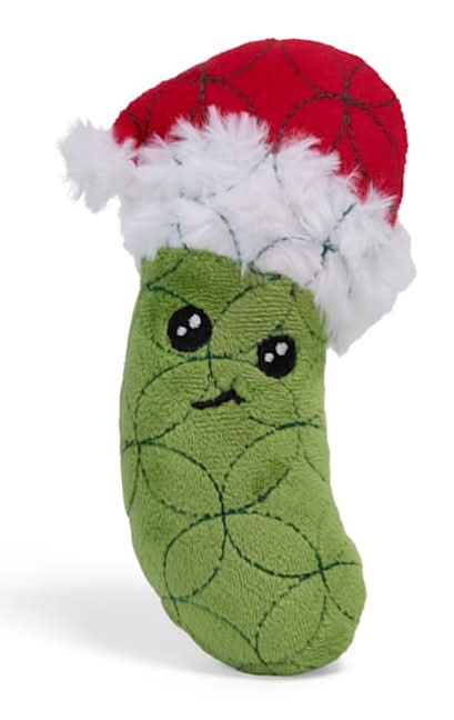 Don't get yourself in a pickle with toy stuffing strewn about-opt for this dog toy for tough chewers from Merry Makings instead. This pickle-shaped dog toy is specially designed to withstand excitable tough chewers, with squeaky, crinkly, cuddly fun that's sure to keep your pup very merry even after the holiday season is over. Size: 0.04 lb