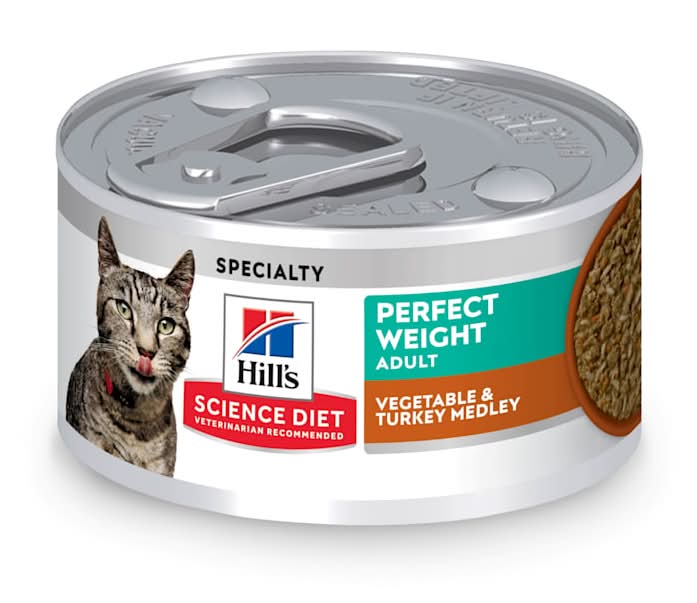 If you're looking for a breakthrough weight management cat food your pet will love, you'll want to try Hill's Science Diet Adult Perfect Weight Roasted Vegetable & Turkey Medley. Formulated for long-lasting weight support, this adult cat food made with natural ingredients has been clinically proven to deliver results. Over 70% of cats tested with this premium cat food lost weight within 10 weeks. High-quality protein helps your grown cat maintain lean muscle, while the rich turkey flavor in a mouthwatering sauce makes this an adult cat food your pet is sure to love and benefit from. Size: 0.21 lb