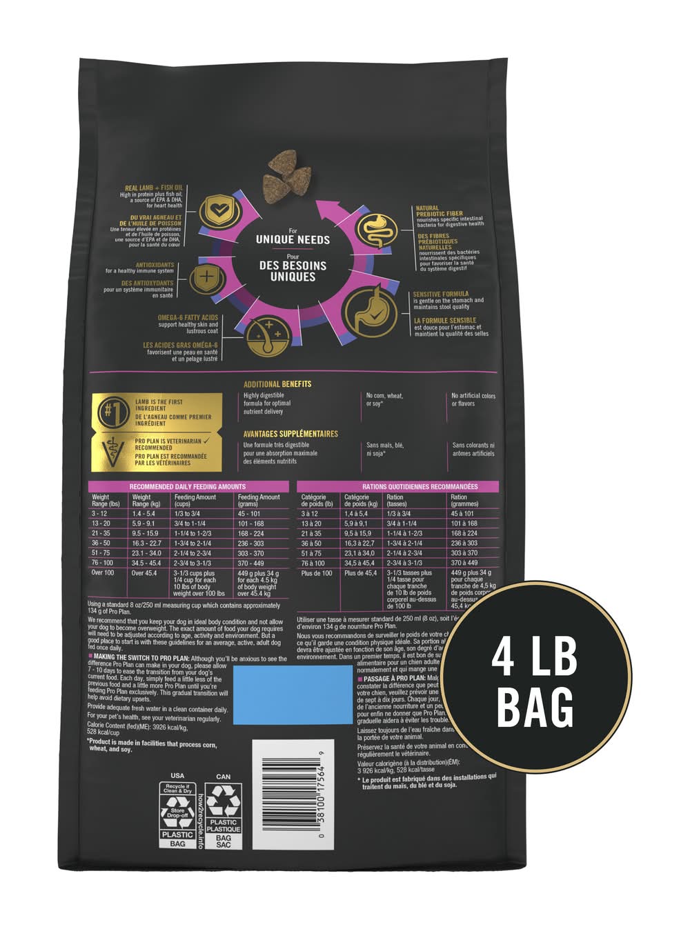 Purina Pro Plan Sensitive Skin & Stomach Lamb & Oat Meal Formula Dry Dog Food, Adult (4 lbs)
