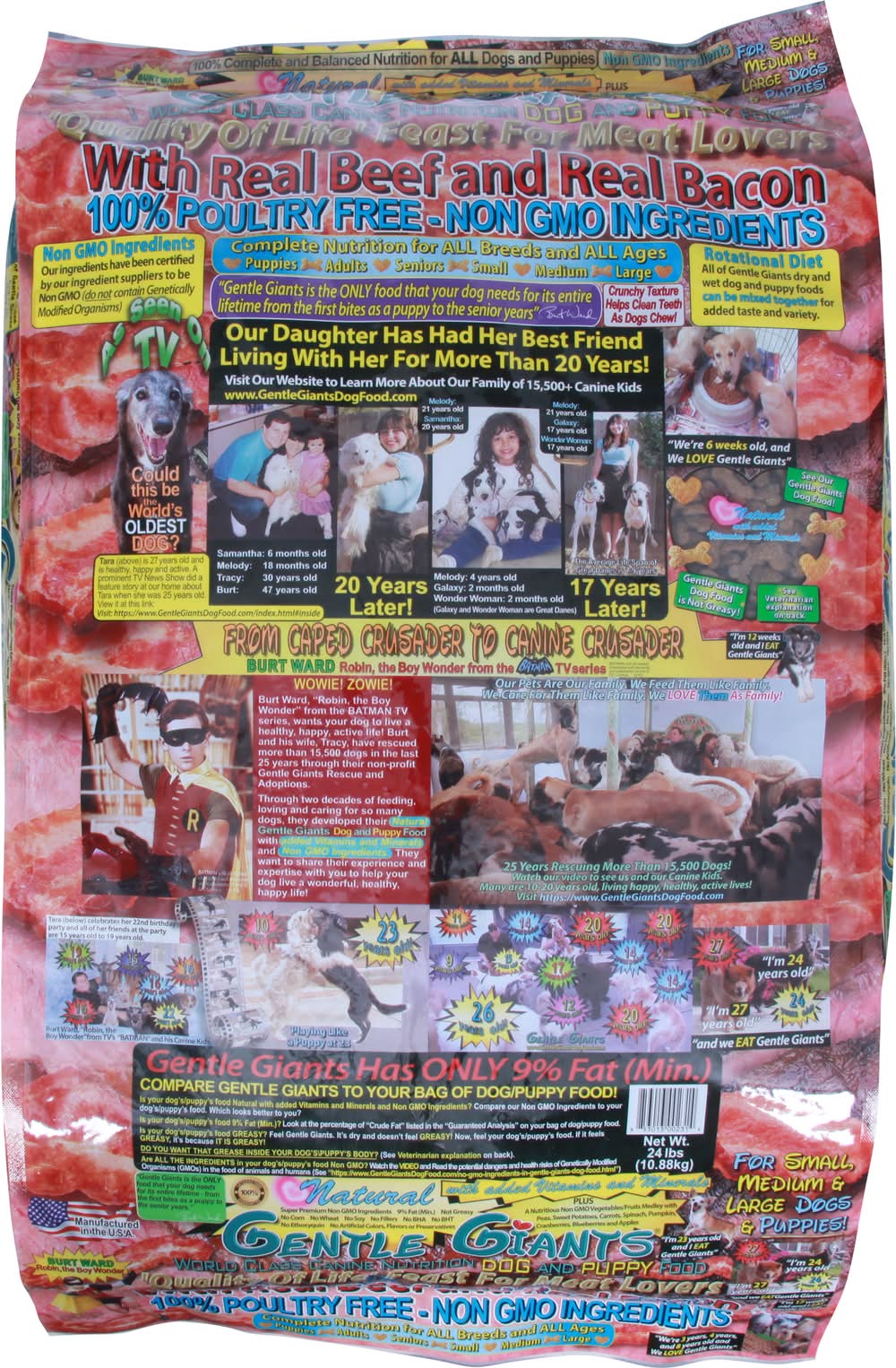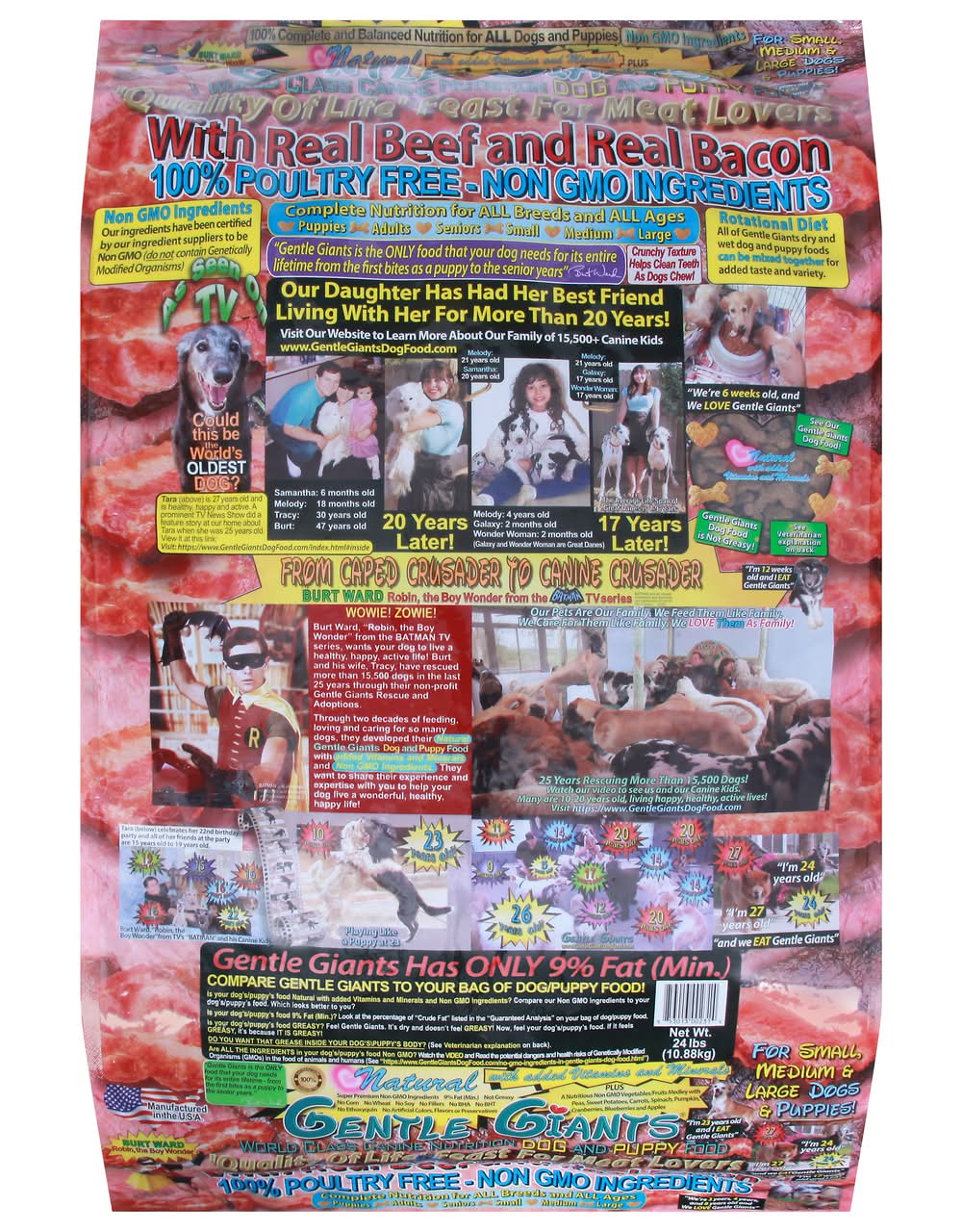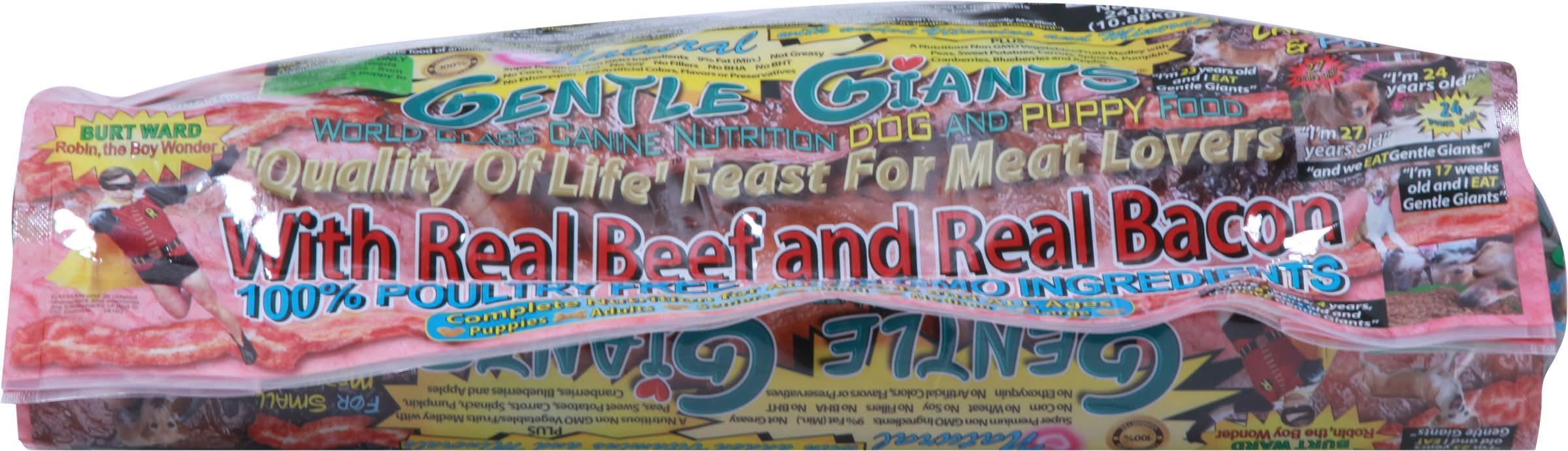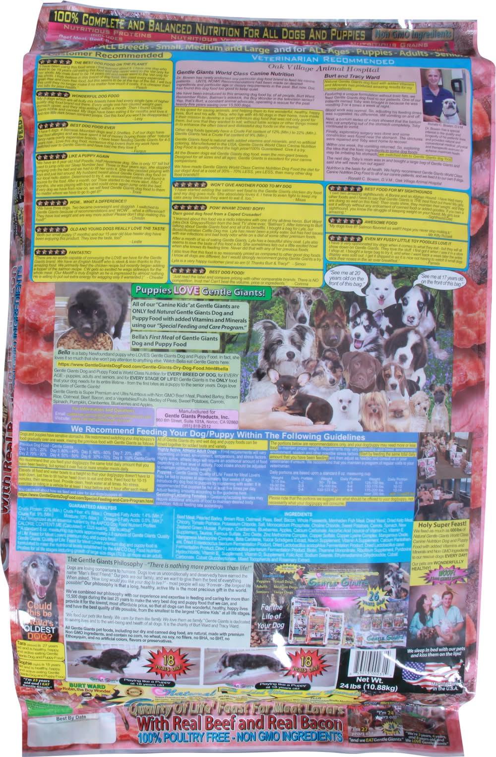 Dog and Puppy Food, Real Beef & Real Bacon • Size: 24.00 lb • Gentle Giants Products, Inc., Norco, CA, 92860, Ph: 951-818-2512