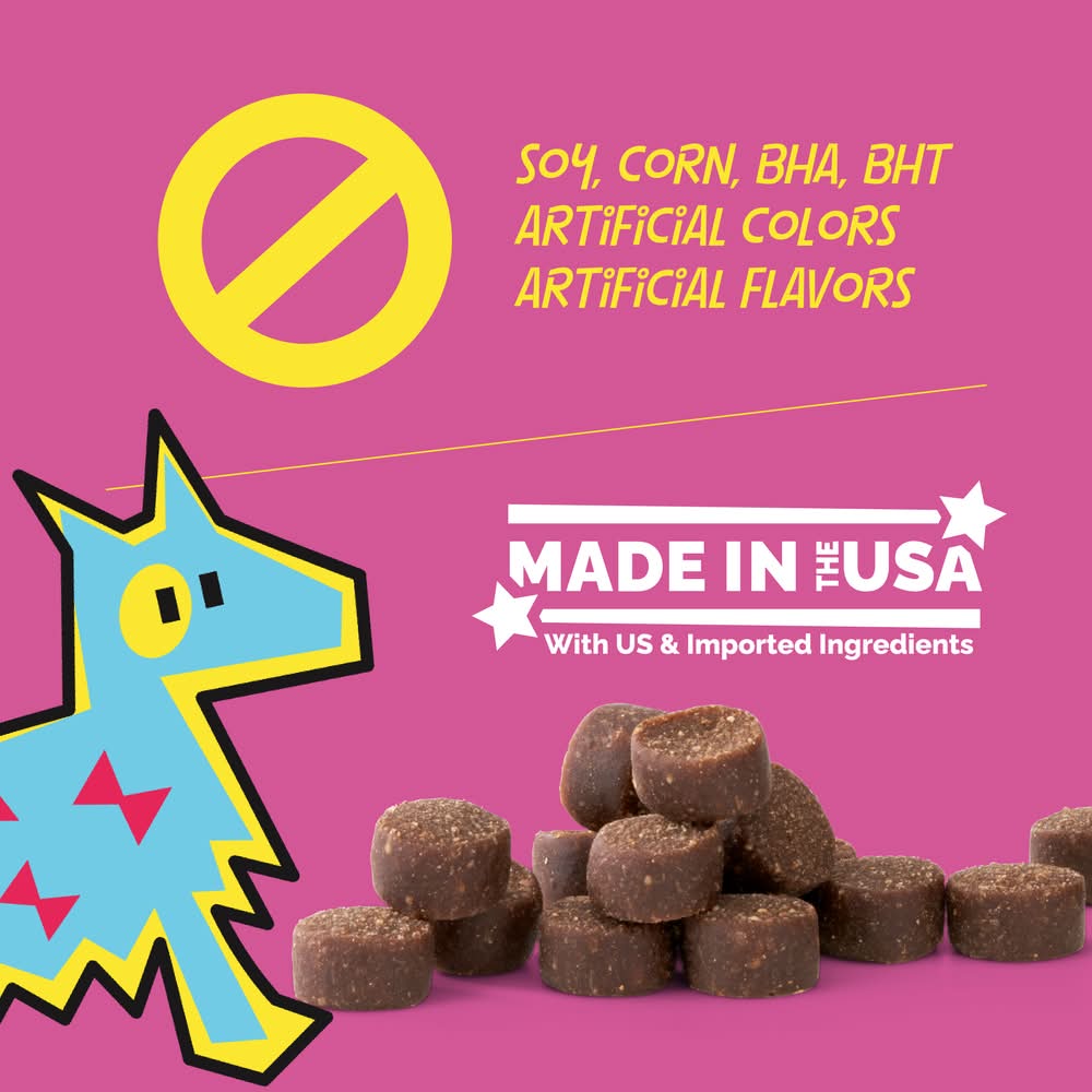 Crazy? Yeah... Crazy Good! Who doesn't love Pulled Pork? This tiny, 1.5-calorie treat might be miniscule in size, but it is HUGE in flavor! Flavored with real Pizza-inspired ingredients like cheese, tomatoes, oregano , and basil, your crazy dog will be begging for more! Size: 0.25 lb
