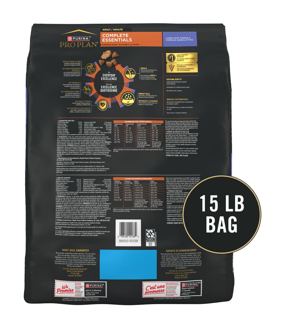 Purina Pro Plan Complete Essentials Dry Dog Food, Lamb-Rice, Adult (15 lbs)