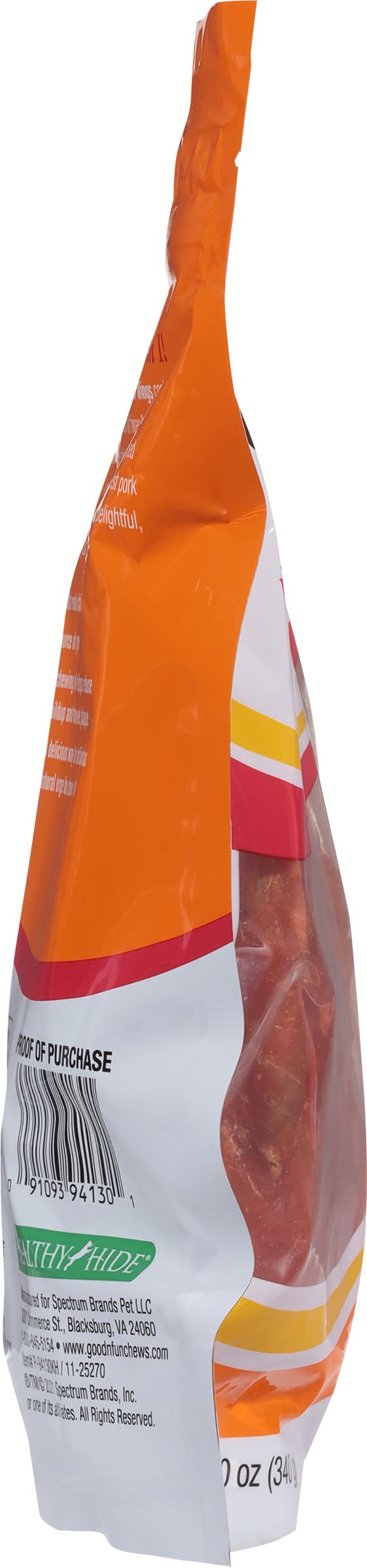 Long-lasting entertainment. Triple Flavor: Premium chicken; delicious pork hide; long-lasting beef hide. 3 delicious treats in 1 Contain a savory combination of three flavors that dogs love. These delicious chew treats are wrapped with real chicken and made with the finest pork hide and beef hide to create this truly delightful, long-lasting chew your dog will love. Great source of protein. Natural chewing action helps reduce tartar buildup and remove plaque. Fun and delicious way to satisfy your dog's natural urge to chew. Healthy hide. • Size: 0.92 lb • Spectrum Brands Pet Llc, 3001 Commerce St,Blacksburg,VA,24060