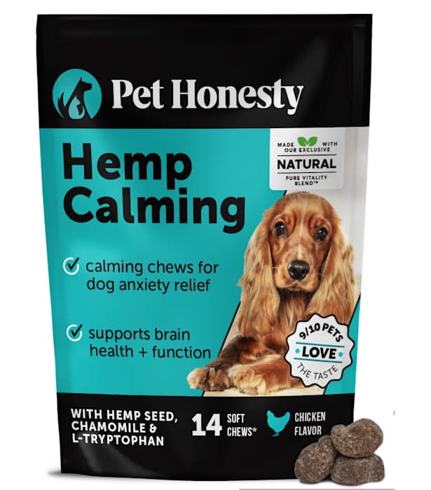 Pet Honesty's Hemp Calming soft chews can help your pup deal with stressful situations. Whether your dog gets nervous with car rides, vet visits, thunderstorms, or being away from you, these delicious Hemp Calming soft chews are formulated to help calm and soothe her. Powered by healthy ingredients that naturally promote calmness - like hemp, ashwagandha, & chamomile - these vet-recommended supplements can help you and your pup rest easy. Size: 0.11 lb