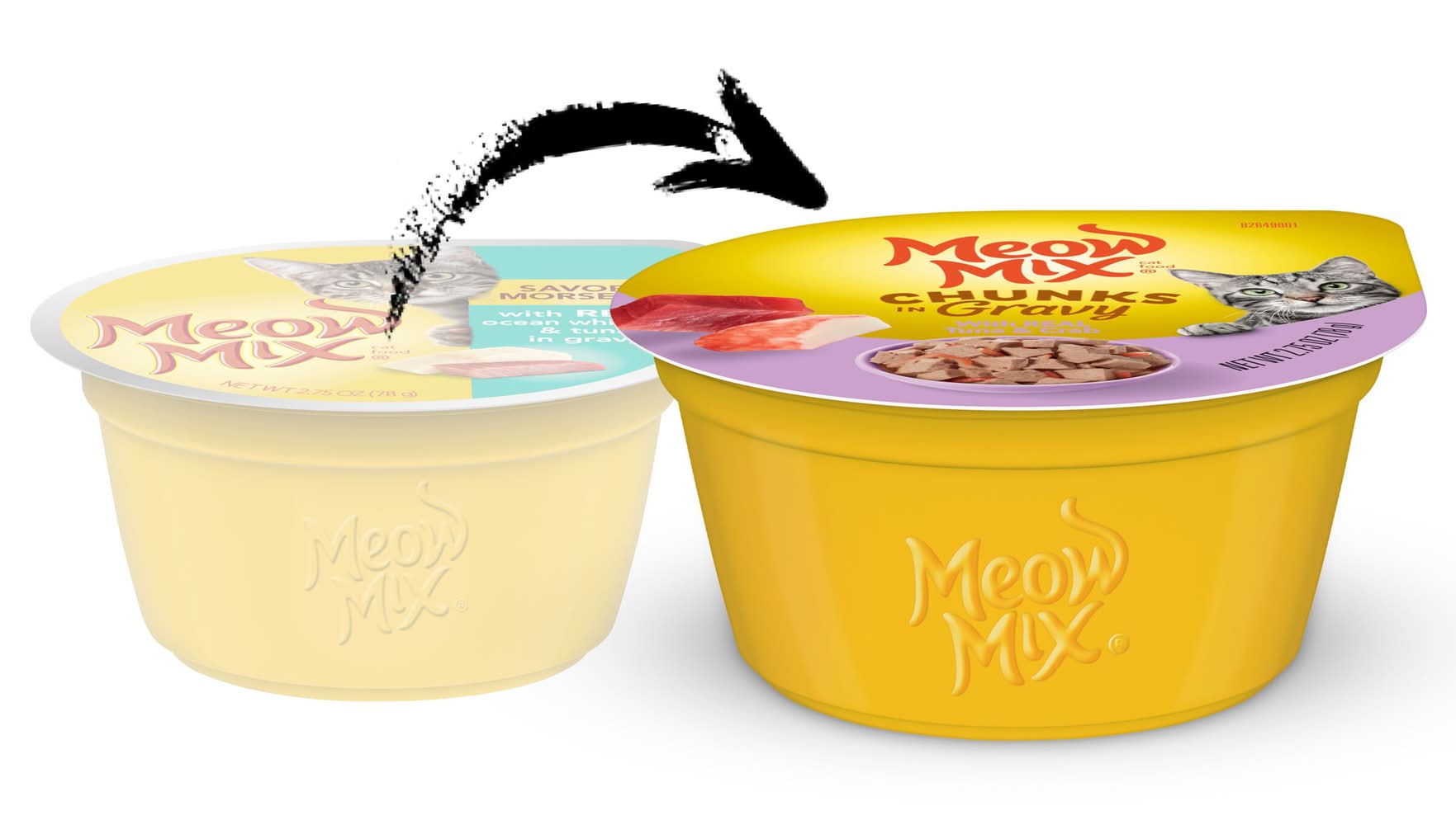 24 cups. 8 tenders in sauce with tasty real tuna & whole shrimp. 8 chunks in gravy with delicious real salmon & ocean fish. 8 chunks in gravy with savory real tuna & crab. New! Tastier recipe (Compared to previous Meow Mix recipe). The only one cats ask for by name. 100% complete and balanced for cats. Irresistible taste cats love! Meow Mix Seafood Selections variety pack has the perfect blend of tastes your cat will love. Made with real tuna, whole shrimp, ocean fish, salmon and crab to make every mealtime irresistibly delicious. , with the information stamped on the side of the individual cup or the information in the best if used by area. Product in Thailand. Size: Adult