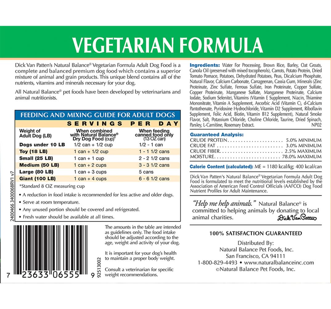 Natural Balance Vegetarian Formula Dog Food (13 oz)