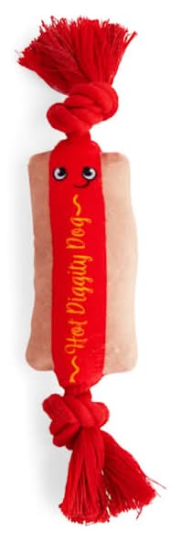 This Leaps and Bounds Plush Hot Dog with Rope is a sweet, but tough treat your pup will love. Plus, with our 2 for 5 deal, your dog can be treated to double the fun. • Color: Brown • Size: Small