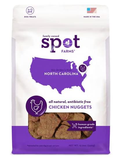 Spot Farms bite-size Chicken Nuggets are soft and chewy, making them an ideal treat for dogs of all sizes! Here at Spot Farms we use only high quality, human grade ingredients, and leave out fillers like glycerin, which can give your dog a tummy ache, and grains like corn, wheat and soy. Whether you re rewarding your pal or just saying I love you, our Chicken Nuggets are sure to hit the spot! Size: 0.80 lb
