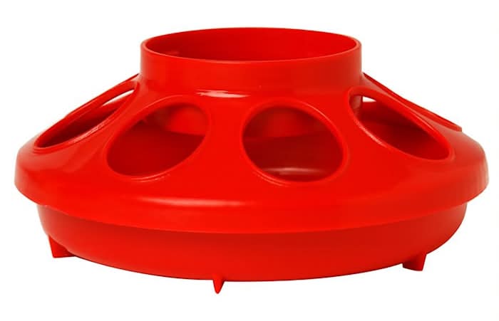 Constructed of heavy duty polypropylene. Base features 8 openings with ribs to minimize feed spillage. • Color: Red • Size: 6.38x2.5 in