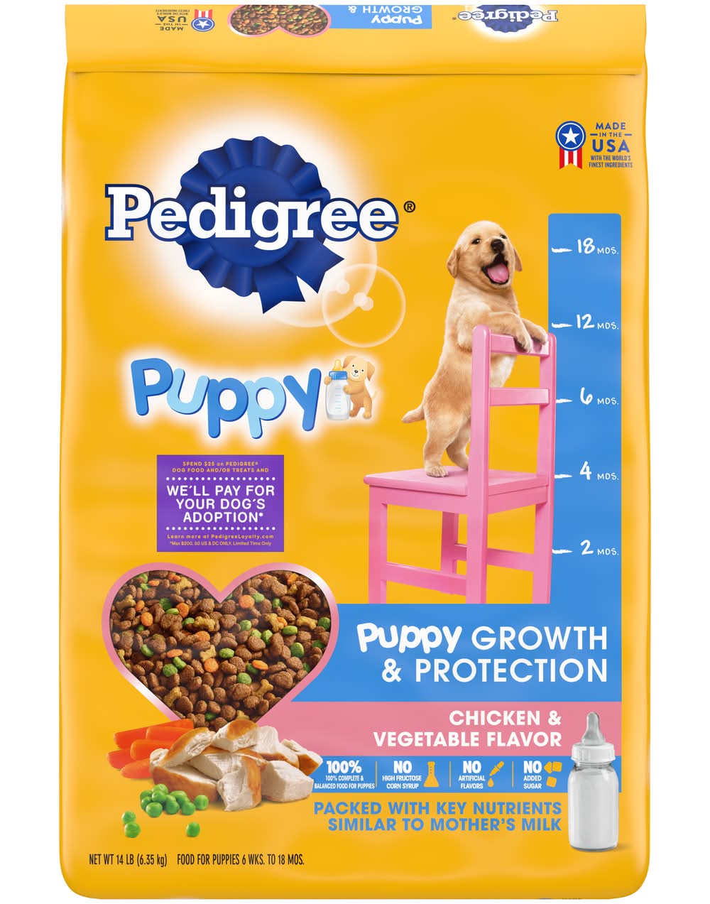 Pedigree Growth & Protection Dry Dog Food, Chicken-Vegetable, Puppy (14 lbs)