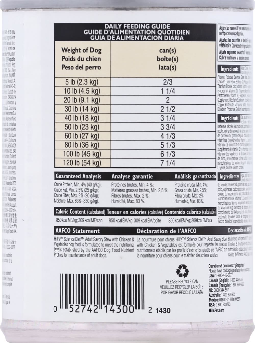 Hill's Science Diet Savory Stew With Chicken & Vegetables Wet Dog Food, Adult (12.8 oz)