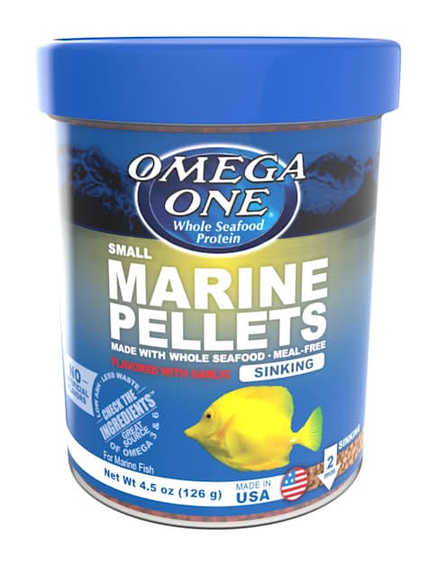 An extremely palatable mix of seafood ingredients is combined with garlic and spirulina to make the very popular Omega One Garlic Marine Pellets. Rich in Omega 3 Fatty Acids, these pellets represent the absolute best in marine nutrition. Offered in a small, large, and mini sized pellet. • Size: 0.35 lb • Spectrum Brands Pet Llc, 3001 Commerce St. Blacksburg, Va 24060