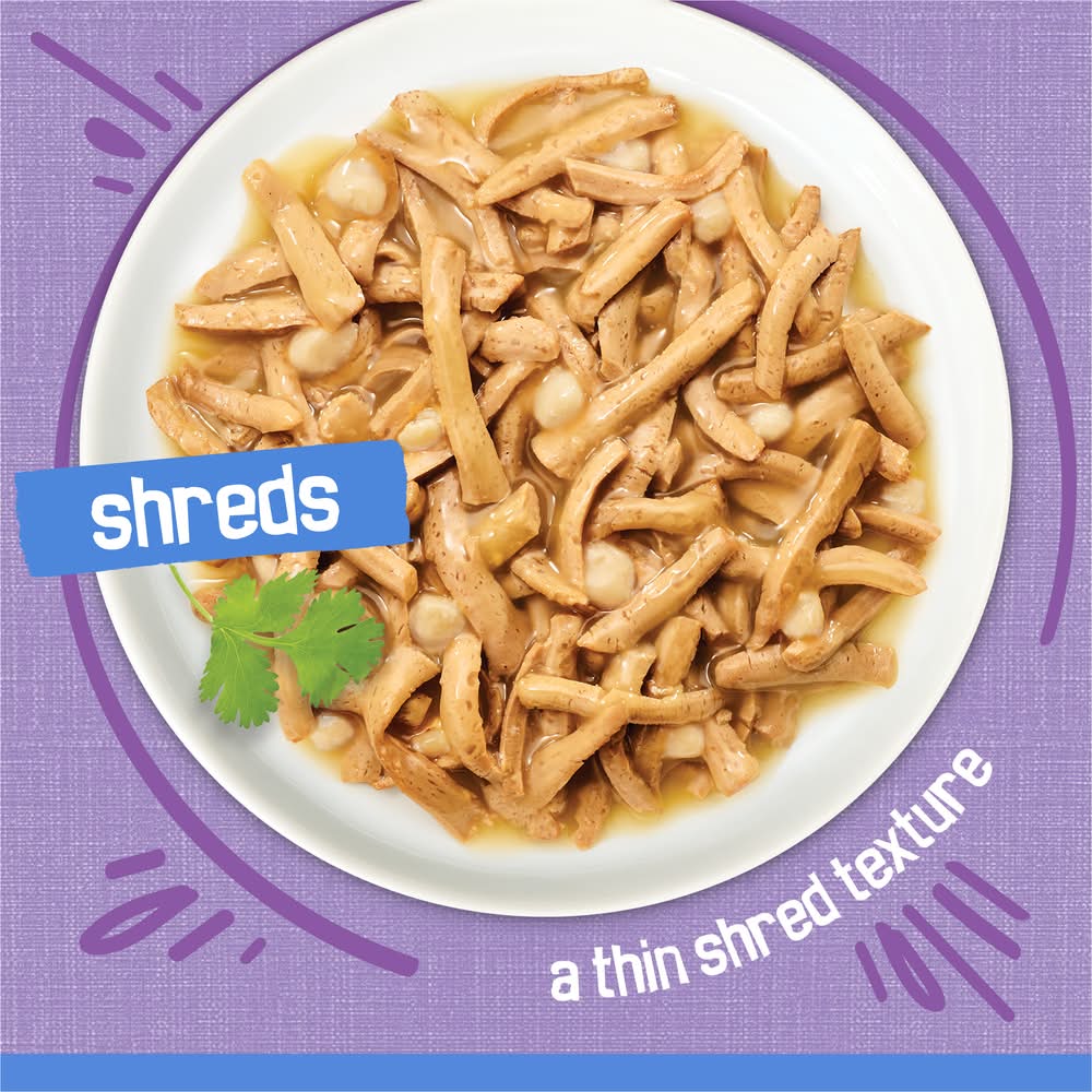 Real turkey delivers the irresistible poultry taste cats crave, and accents of cheese provide delicious added flavor to every bite. With tender, thin shreds, this turkey shreds in gravy cat food delivers a tempting, palate-pleasing texture she'll crave again and again. Let the rich cat food aroma lead her to you every time you open a can, and watch her delight in every scrumptious drop of decadent gravy for cats. She'll adore the mouthwatering goodness in every Shreds canned cat food serving, and you can feel good about giving her a meal that supports the healthy maintenance of adult cats. Pour this wet food for cats with no artificial colors or preservatives into her dish at mealtime and indulge her desire for tasty flavor and texture combinations. Size: 0.39 lb