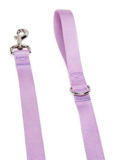The classic Youly Dog Leash is a must-have essential for pet owners. It features metal hardware, a handy swivel snap and a durable webbed design that stands up to daily walks. Be sure to complete your dog's look with the matching collar. • Color: Lavender • Size: 6 ft x 1 in