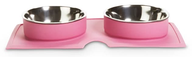 this Bowls keeps their food and water all in one place. Including 2 stainless-steel bowls, this double diner is designed with a flexible silicone base to help contain mealtime messes. You can also pop the set right into the dishwasher to keep their dinner table nice and clean between feasts. • Color: Pink • Size: 1.52 lb