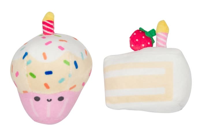 Pearhead's Birthday Cat Toy Set includes two plush cat toys: 1 Strawberry Cake, and 1 Cupcake. This birthday themed set is the perfect playtime accessory for your kitty. Size: 0.10 lb
