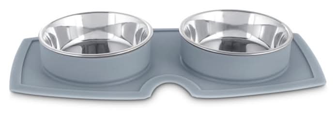 The EveryYay Better Together Silicone Double Diner with Stainless-Steel Bowls keeps their food and water all in one place. Including 2 stainless-steel bowls, this double diner is designed with a flexible silicone base to help contain mealtime messes. You can also pop the set right into the dishwasher to keep their dinner table nice and clean between feasts. • Color: Gray • Size: 1.57 lb