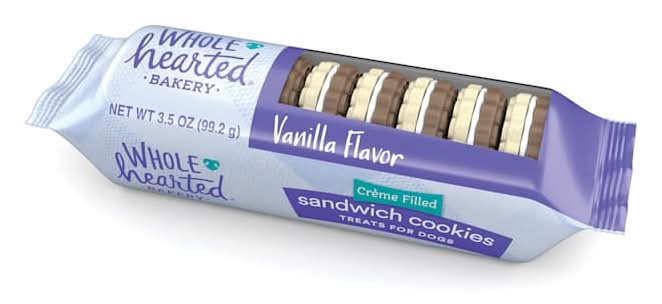 Treat your pet to these sweet, creamy cookie sandwiches from WholeHearted. These have a truly scrumptious vanilla flavor your dog will love. Size: 0.24 lb