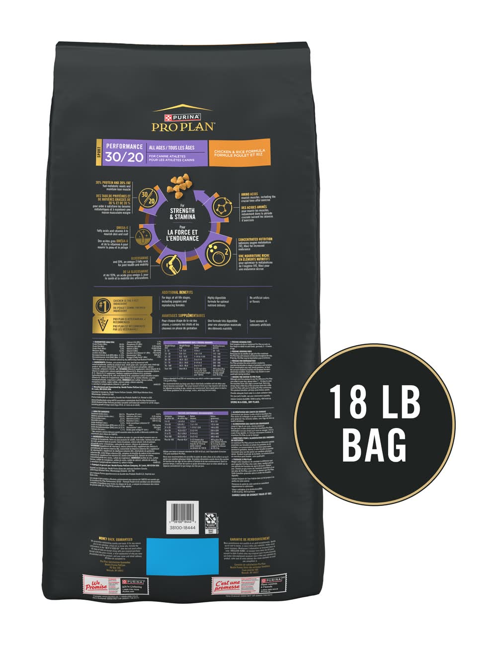 Purina Pro Plan Sport Performance High Protein Dry Dog Food, Chicken & Rice Formula, All Ages (18 lbs)