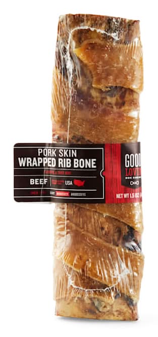 The Skin-wrapped Rib Bone Dog Chew from Good Lovin' exercises your pup's chompers while providing the great taste your dog craves and the benefits of helping to clean their teeth and gums as they chew. Size: 0.09 lb