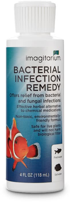 The Imagitarium Bacterial Remedy helps to promote relief from bacterial and fungal infections common in aquarium pets. A natural alternative to chemical medications, this formula is safe for live plants and doesn't disrupt the biological filter. Size: 0.28 lb