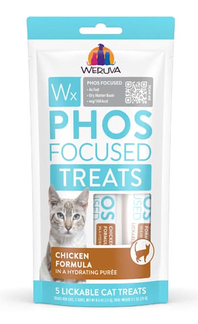 At we understand the challenges of caring for aging cats. That's why founders David and Stacie Forman created Wx Phos Focused, lowest phosphorus foods. Inspired by their own experiences as pet parents, they recognized the need for a lower phosphorus food that cats would eat while providing the essential protein levels needed to help maintain muscle mass. Boasting high palatability and a diverse range of formulas and textures, Wx Phos Focused serves the obligate carnivore by using naturally low phosphorus, high-quality proteins like boneless skinless chicken breast, boneless tilapia filets, and egg whites. Available in wet food, Freeze Dried, and treats, it's more than just nutrition; it's peace of mind for when it matters most. • Pack size: 5 • Size: 0.20 lb