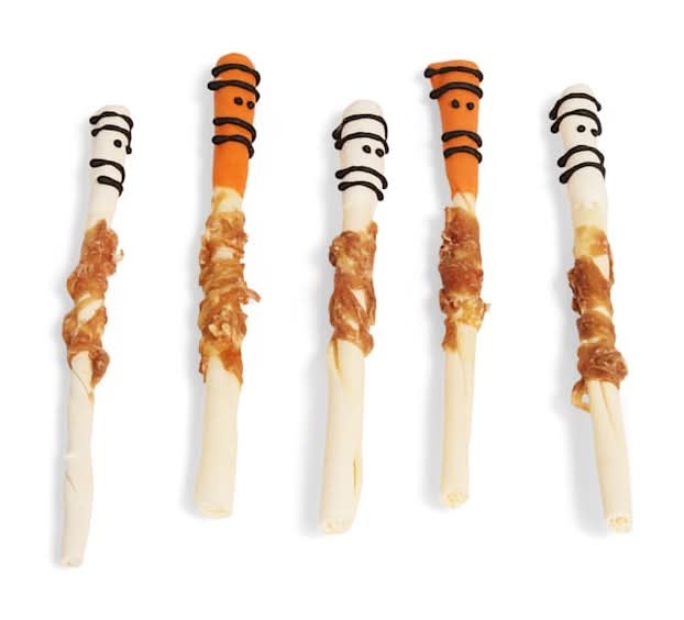 Add some frighteningly festive flair to your pup's trick-or-treat haul with these mummy-inspired Chicken-Wrapped Rawhide Stick Dog Chews. With a delicious flavor and Halloween-inspired design, it's the most delicious way for your furry friend to celebrate the very scary. Size: 0.31 lb