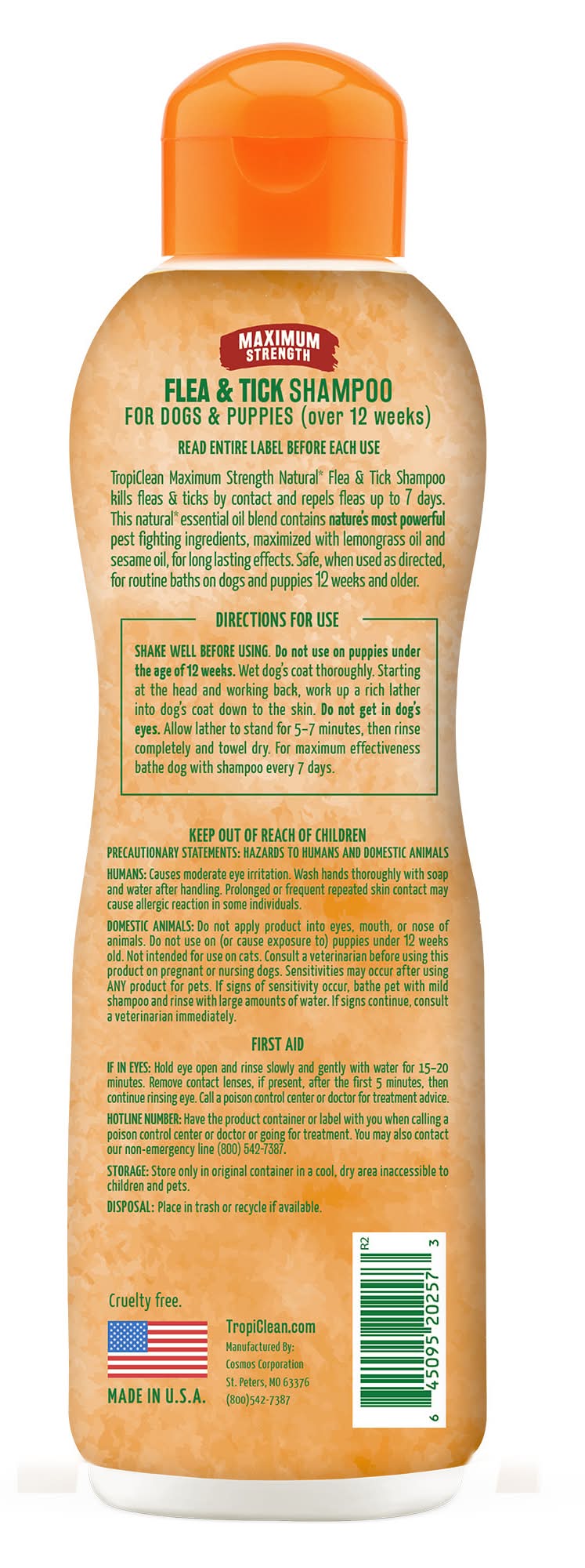 Tropiclean Maximum Strength Natural Flea & Tick Dog Shampoo (20 fl oz)