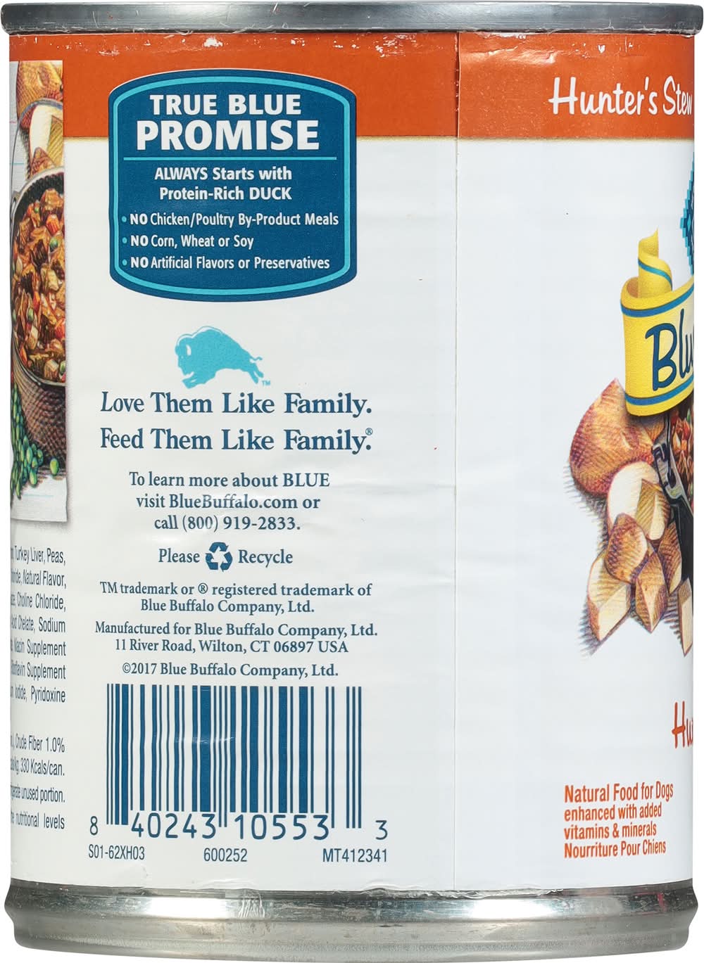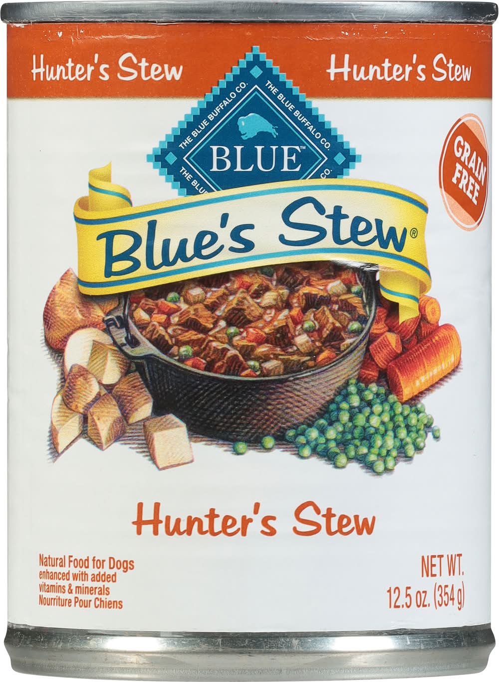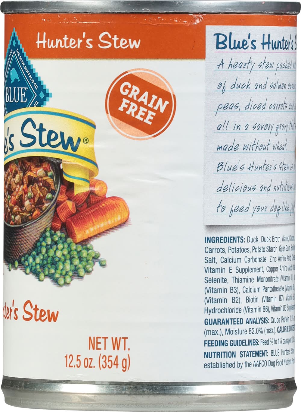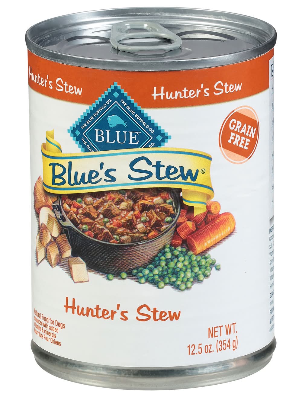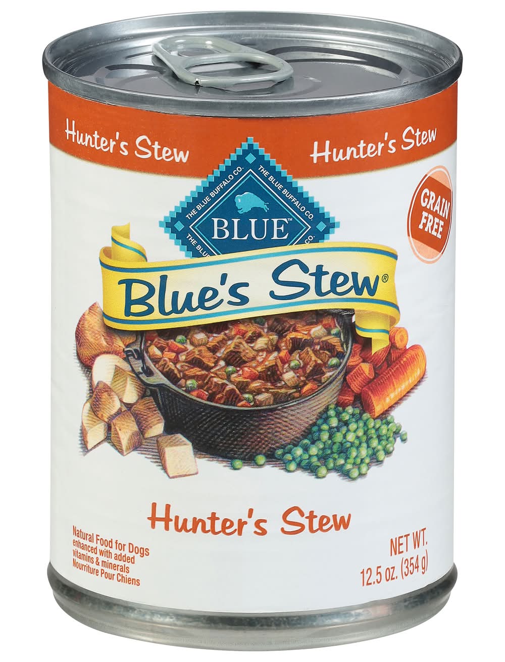 Food for Dogs, Grain Free, Hunter's Stew, Natural • Size: 0.89 lb • Blue Buffalo Company, Ltd., Wilton, CT, 06897 • Packaging: Reusable