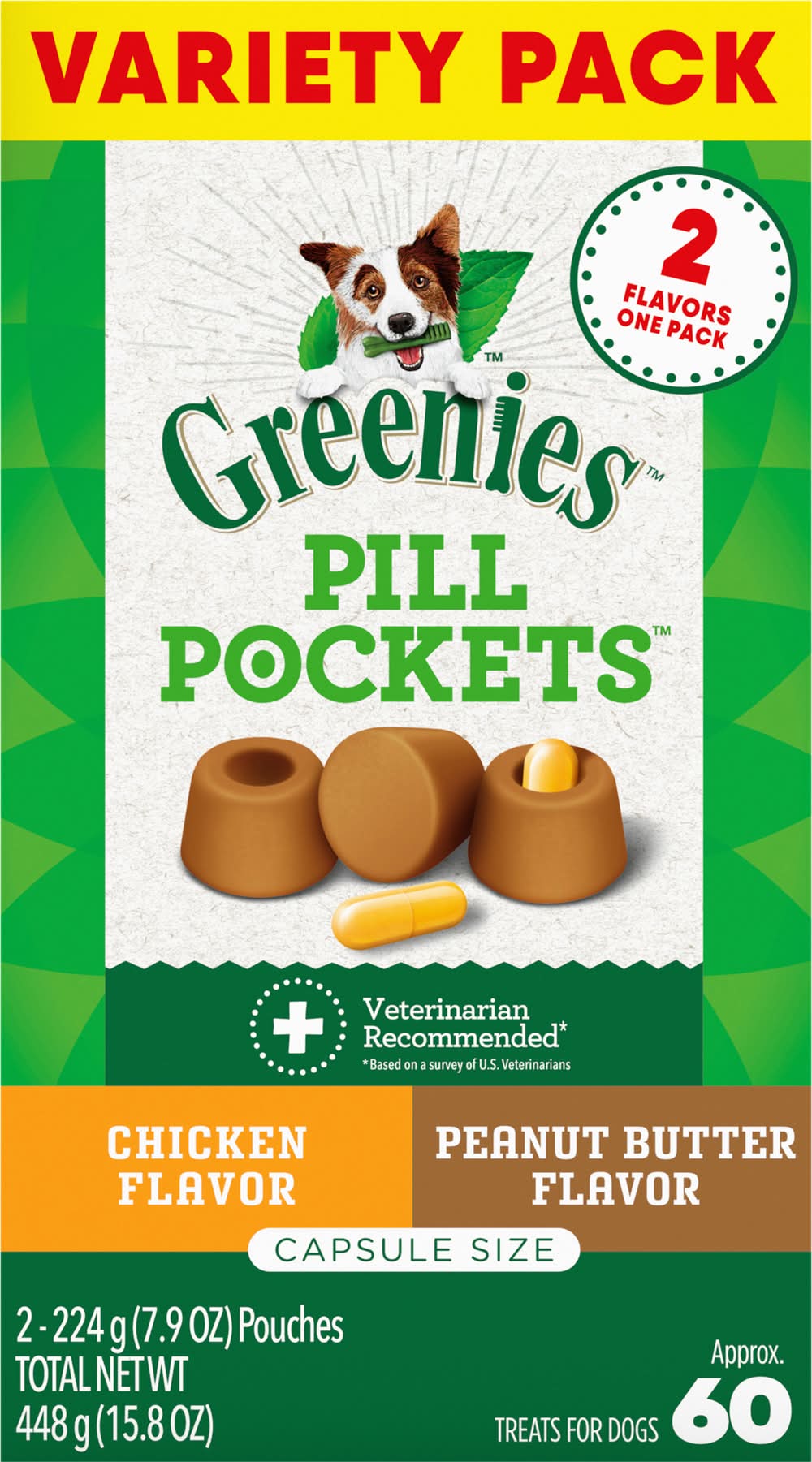Greenies Pill Pockets Soft Dog Treats Variety pack, Chicken-Peanut Butter (15.8 oz, 2 ct)