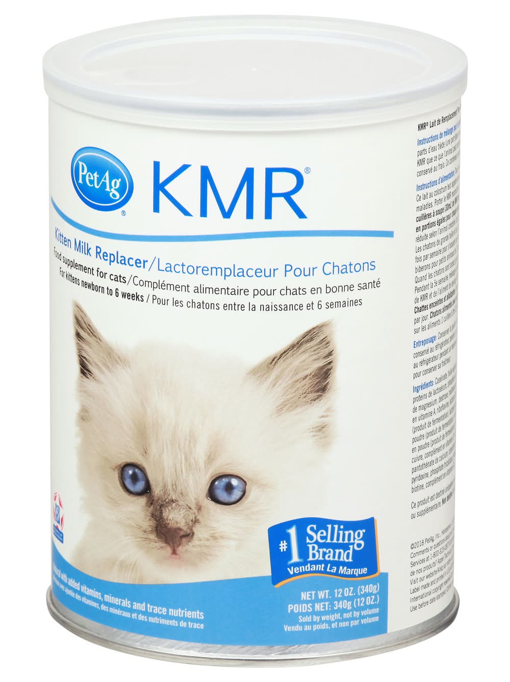 Food supplement for cats. For kittens newborn to 6 weeks. No 1 selling brand. KMR Kitten Milk Replacer is a good source of prebiotics and probiotics. This product is intended for intermittent or supplemental feeding only. Not for human consumption. • Size: Kitten • PetAg, Hampshire, IL, 60140, Ph: 800-323-0877