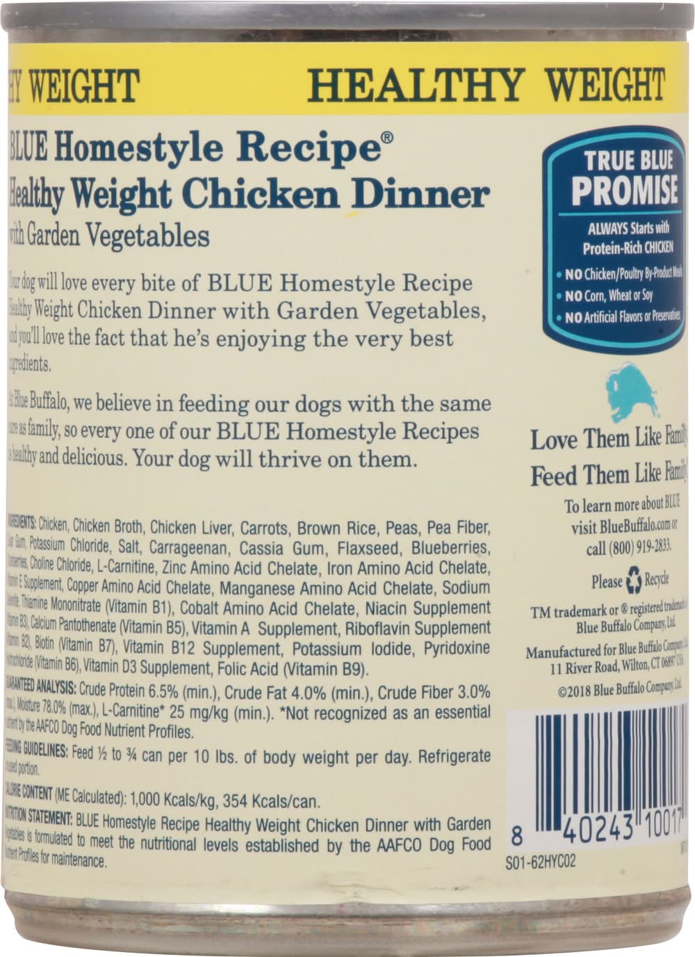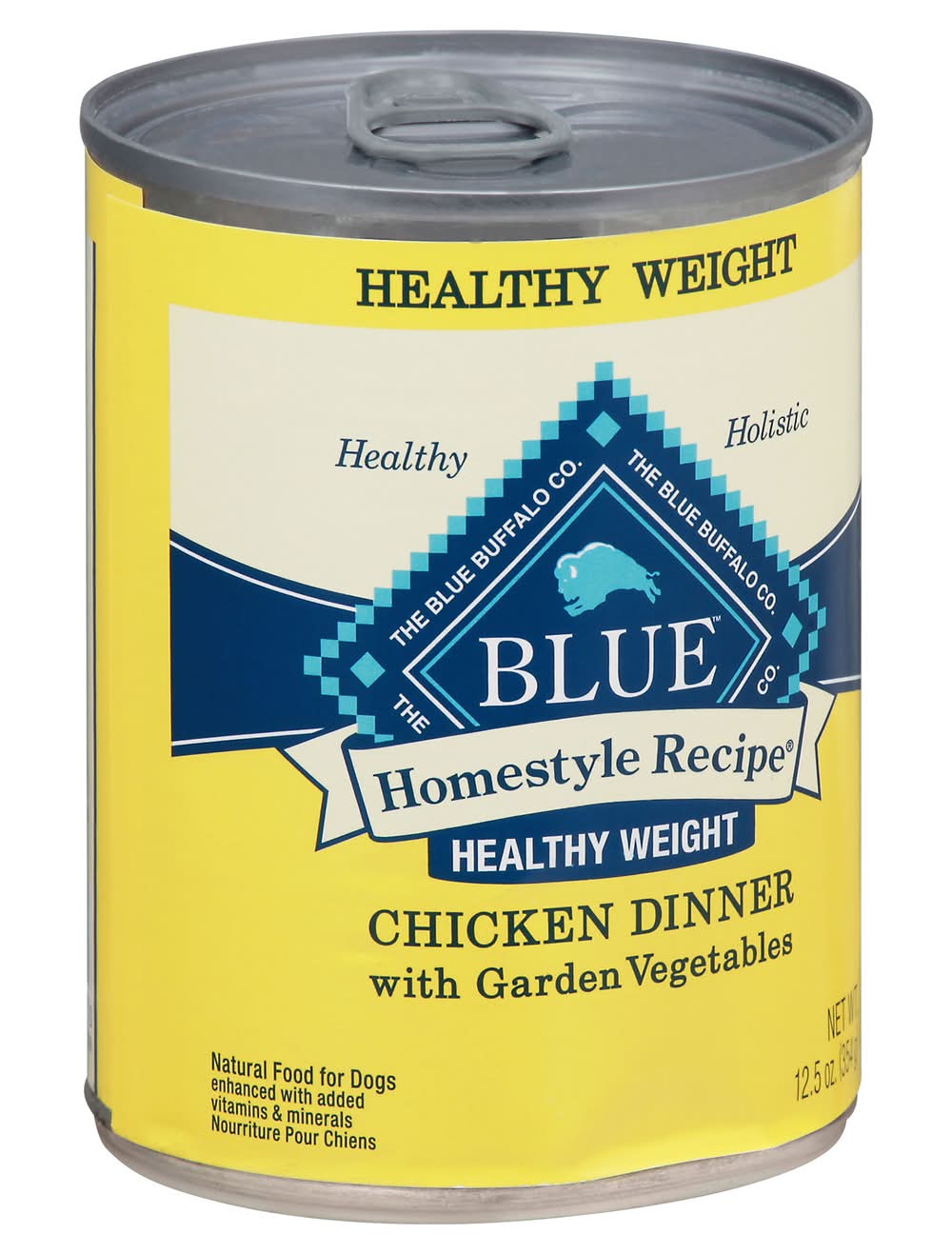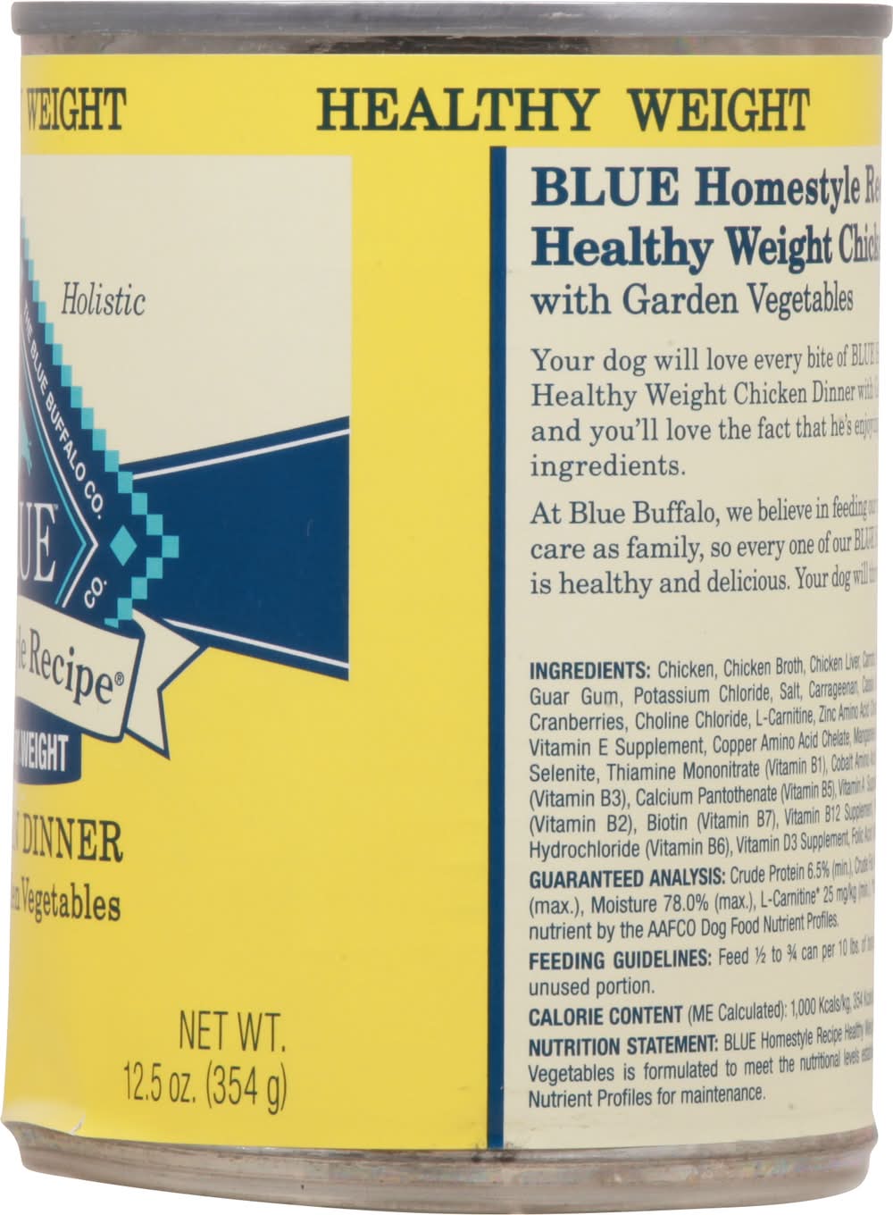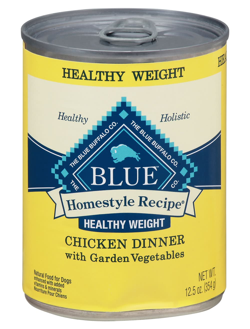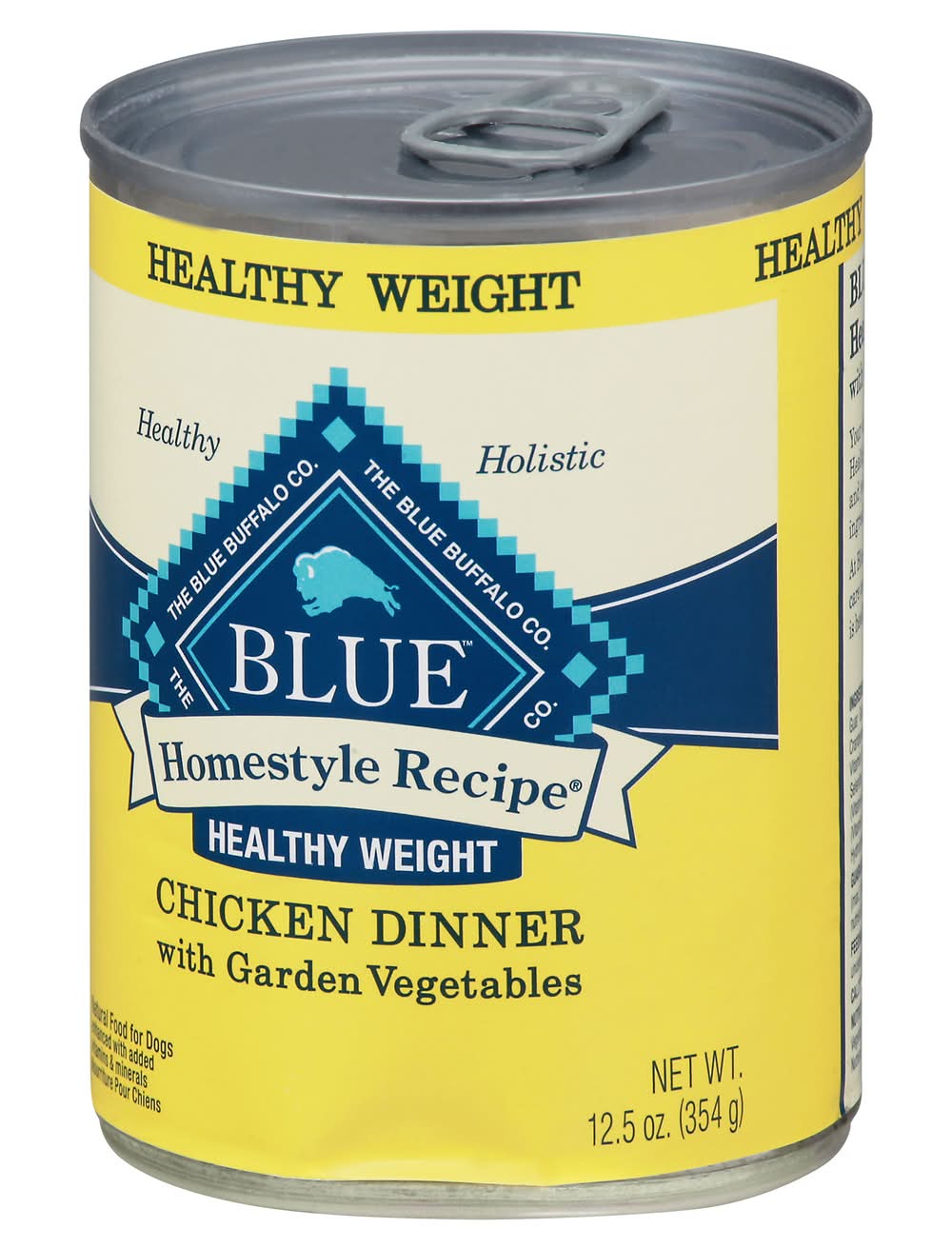 Food for Dogs, Natural, Chicken Dinner with Garden Vegetables, Healthy Weight • Size: 0.89 lb • Blue Buffalo Company, Ltd., 11 River Road Wilton, CT 06897 USA,