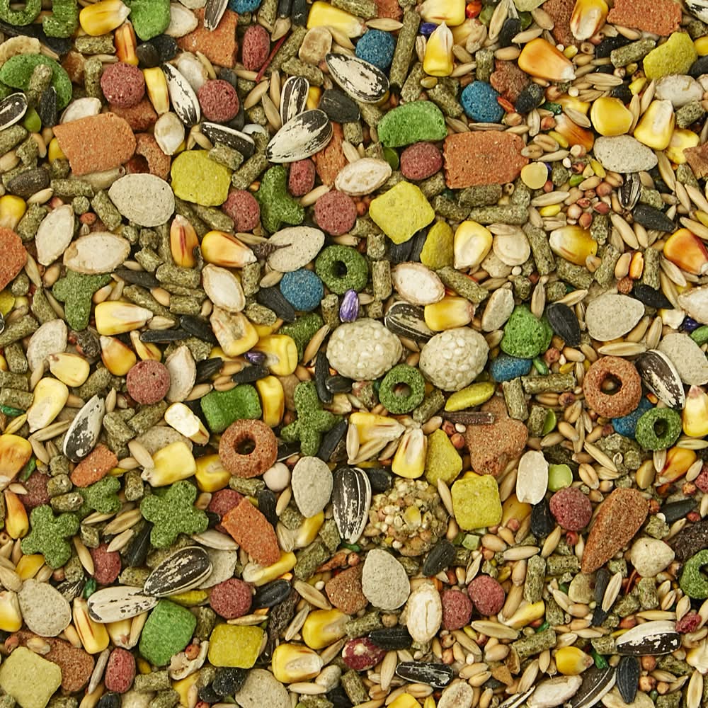 Ingredients: Corn, Oats, Ground Corn, Wheat, Milo, Dehulled Soybean Meal, Sunflower Seed, Millet, Sun-cured Alfalfa Meal, Green Split Peas, Oat Groats, Ground Wheat, Shelled Peanuts, Barley, Ground Oats, Seed, Raisins, Dehydrated Carrots, Dried Bananas, Safflower Seed, Yellow Field Peas, Dicalcium Phosphate, Calcium Carbonate, Ground Rice, Dried Papaya, Soybean Oil, Wheat Middlings, Salt, Rice Flour, Dehydrated Sweet Potatoes, Dried Cane Molasses, Ground Flax Seed (Source of Omega-3), Dehydrated Apples, Cracked Corn, Fructooligosaccharide, L-Lysine, DL-Methionine, Dextrose, Maltodextrins, Vitamin A Supplement, Choline Chloride, Partially Hydrogenated Soybean Oil, Hulled Millet, Yeast Extract, Wheat Germ Meal, Brewers Dried Yeast, Partially Hydrogenated Palm Oil, Gelatin, Vitamin E Supplement, Vitamin B12 Supplement, Riboflavin Supplement, Sesame Seed, Ferrous Sulfate, Titanium Dioxide ( Color), Yucca Schidigera Extract, Mixed Tocopherols (Preservative), Dried Reduced Lactose Whey, Dried Nonfat Yogurt Powder, Hulled Sunflower Seed, Dried Pineapple, Manganous Oxide, Zinc Oxide, Niacin, Copper Sulfate, Menadione Sodium Bisulfite Complex (Source of Vitamin K activity), Honey, Rosemary Extract, Citric Acid, Calcium Pantothenate, Cholecalciferol (Source of Vitamin D3), Pyridoxine Hydrochloride, Thiamine Mononitrate, Vanilla, Folic Acid, Calcium Iodate, Biotin, Cobalt Carbonate, Sodium Selenite, Dried Aspergillus oryzae Fermentation Extract, Dried Bacillus licheniformis Fermentation Product, Dried Bacillus subtilis Fermentation Product, Natural Flavor, FDC Yellow #5, FDC Red #40, FDC Blue #1, FDC Red #3, FDC Yellow #5 Lake Contains: Contains peanuts and/or tree nuts