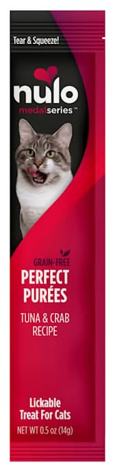 Nulo MedalSeries Puree is a highly nutritious cat treat made with seafood and broth that's rich in flavor and low in calories. Conveniently packaged, serve directly from the packet as a lickable treat or use as a topper on dry food. Size: 0.04 lb