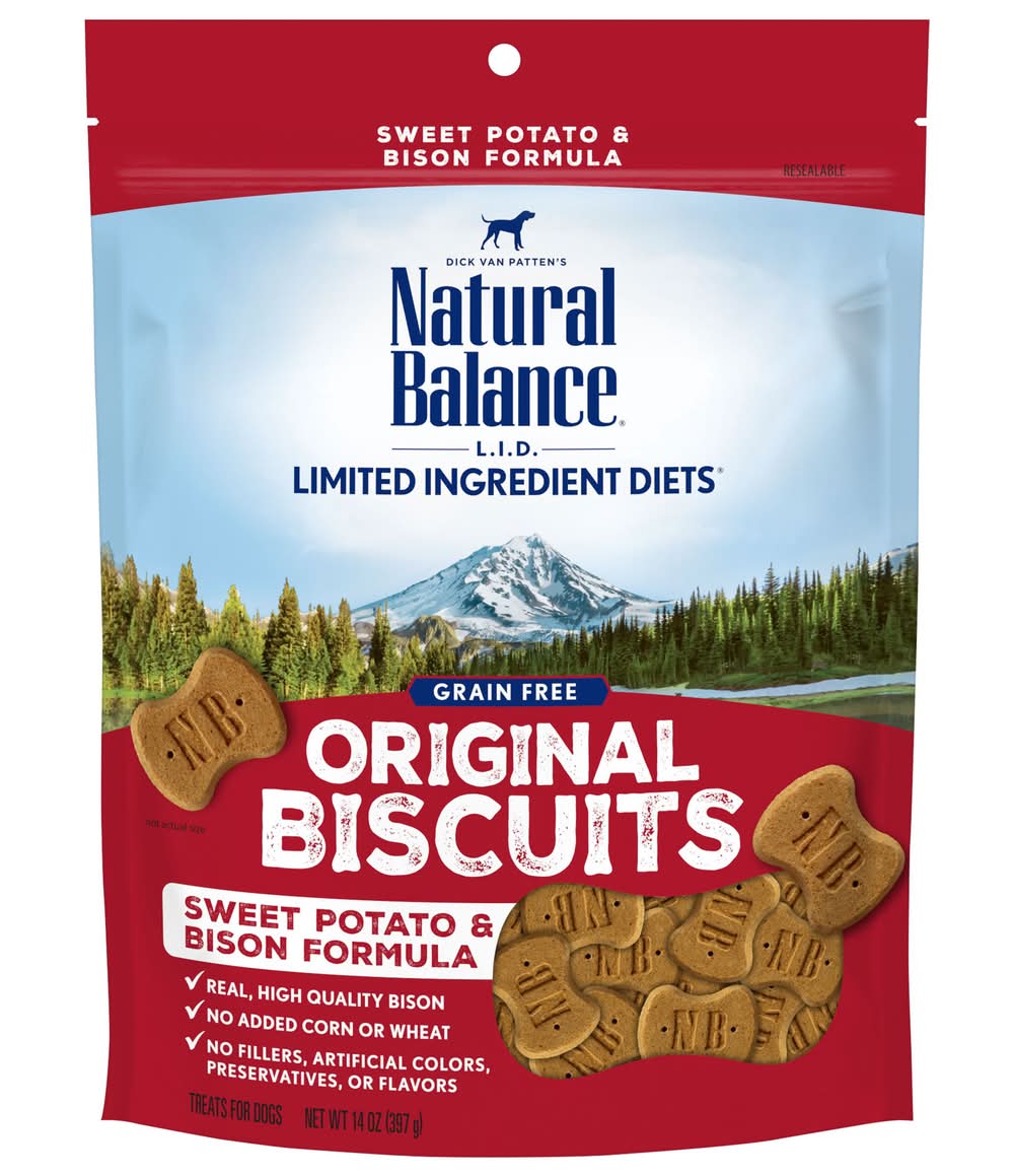 Natural Balance L.i.d. Limited Ingredient Diets Original Biscuits Grain Free Sweet Potato & Bison Formula Treats For Dogs (14 oz)
