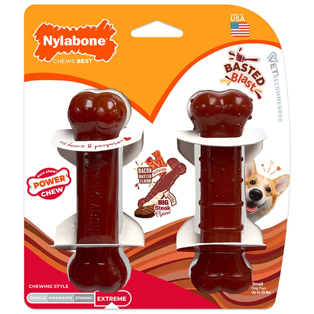 Nylabone® Power Chew Basted Blast Dog Toy - 2 Pack, Bacon & Steak Flavor (Color: Red, Size: Regular)