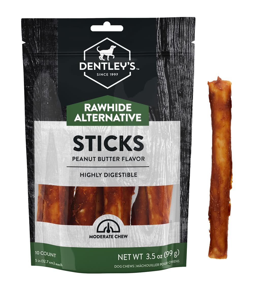 Dentley's® Rawhide-Free 5\" Retriever Sticks Dog Chew - Peanut Butter, 10 Count (Flavor: Peanut Butter, Size: 10 Count)