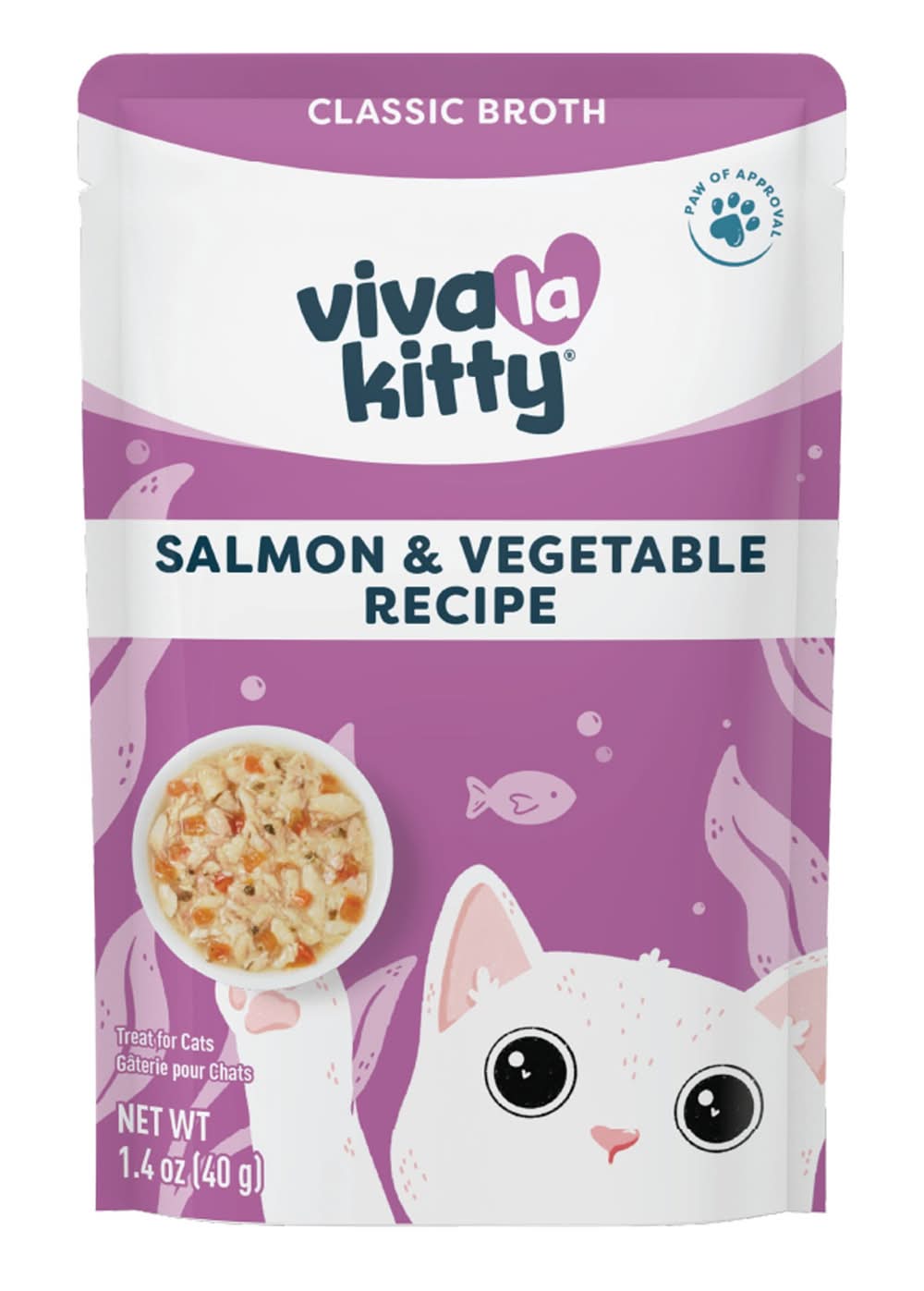Viva La Kitty® Classic Broth Cat Treat - Grain Free, High Protein, 1.4 Oz (Flavor: Salmon & Vegetable, Size: 1.4 Oz)