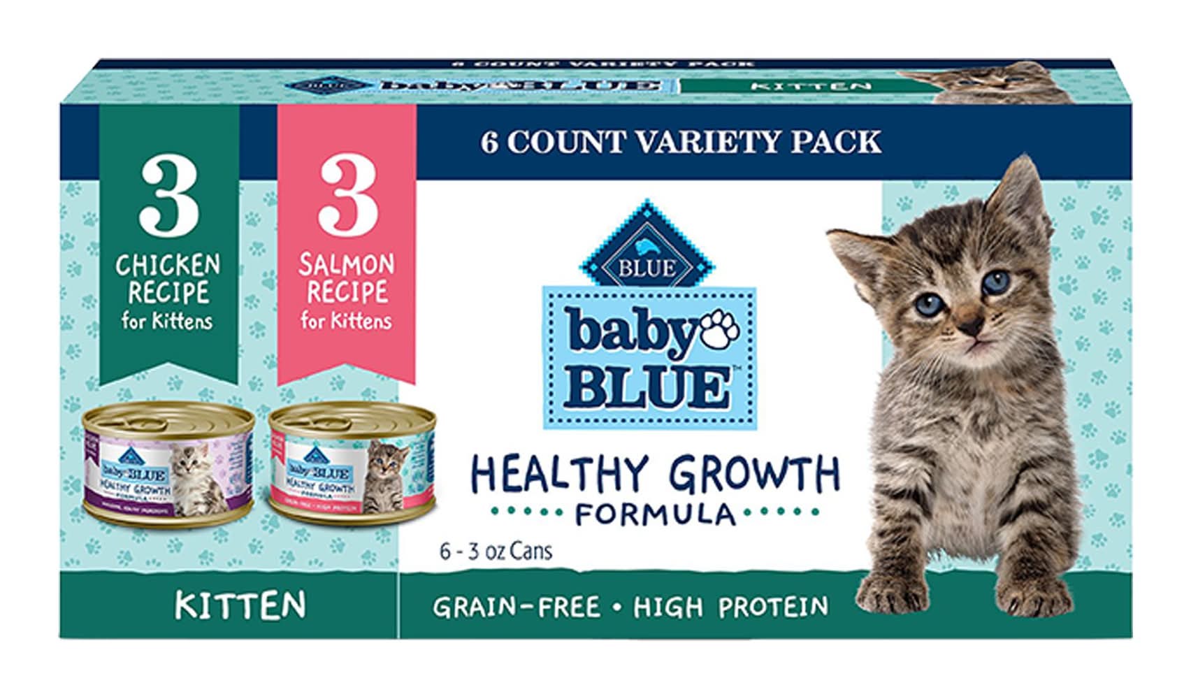 Blue Buffalo Baby BLUE Kitten Wet Cat Food Variety Pack - Chicken & Salmon, 6 Count (Size: 3 Oz)