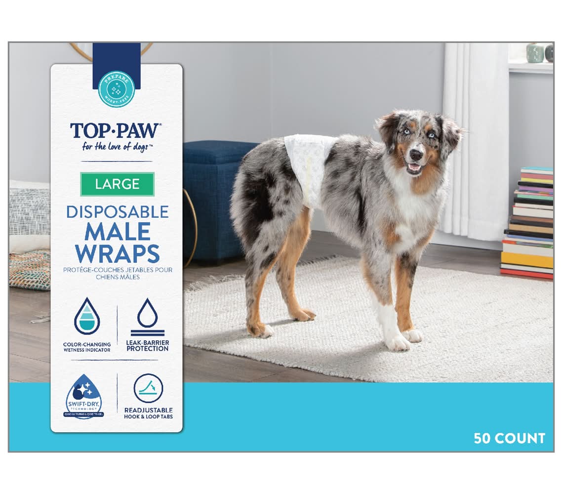 Top Paw® Disposable Male Wraps for Dogs, with Swift-Dry® Technology (Size: Large)