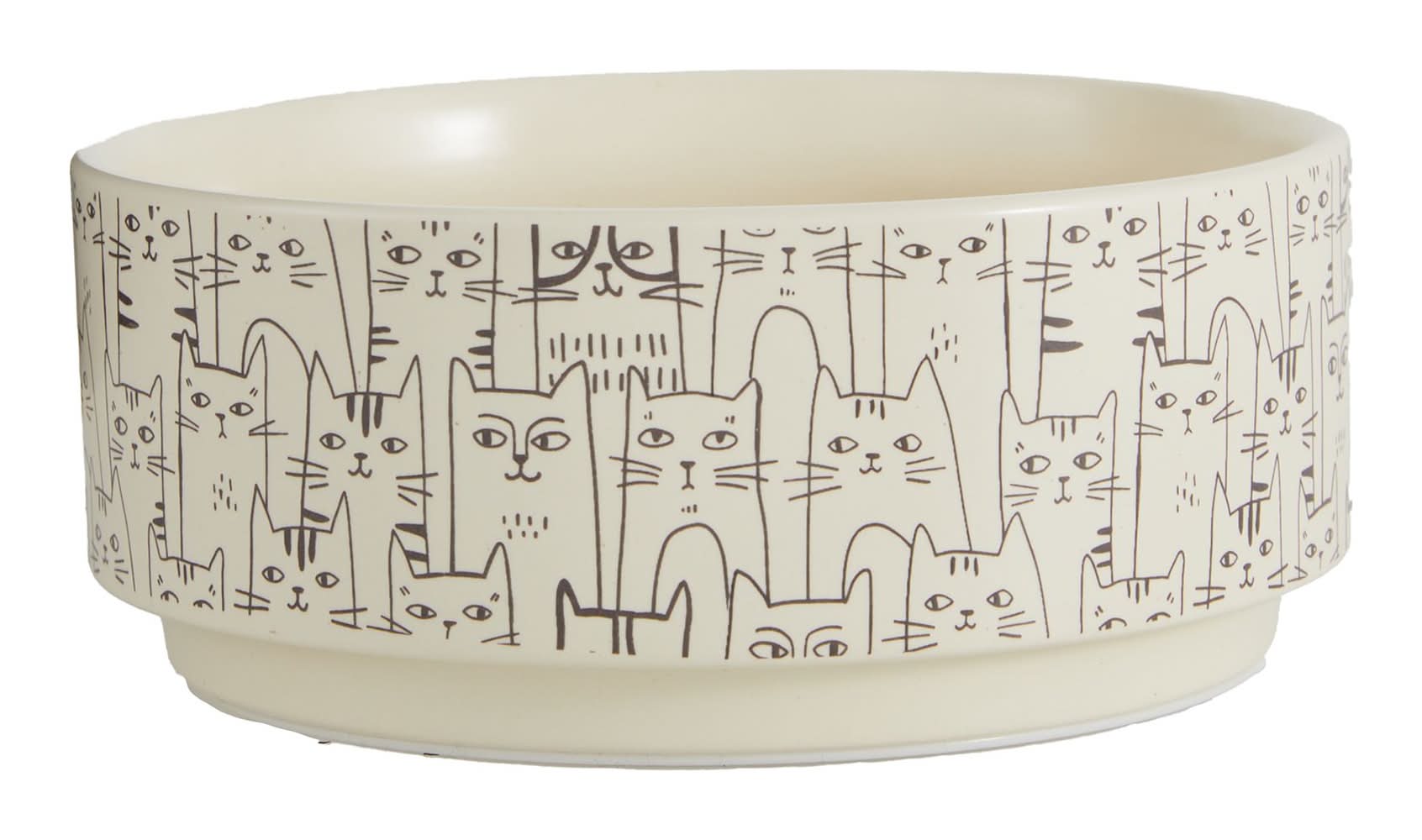 Whisker City® Ceramic Sketch Cat Bowl, 1.5-cup (Color: Cream, Size: 1.5 Cup)
