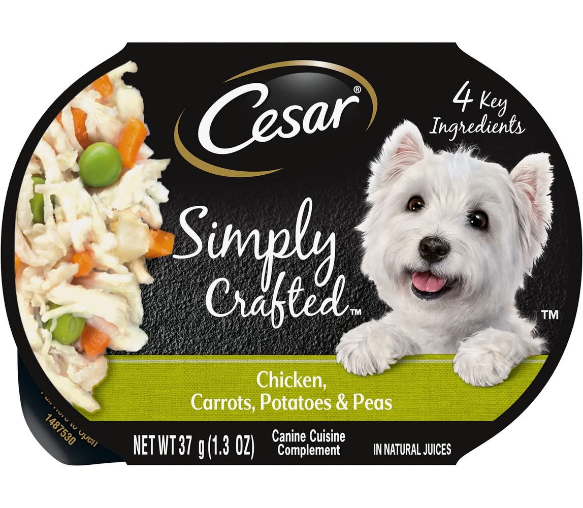 Cesar® Simply Crafted Adult Wet Dog Food & Meal Topper - Grain Free, 1.30 Oz. (Flavor: Chicken, Carrots, Potatoes & Peas, Color: Black, Size: 1.3 Oz)