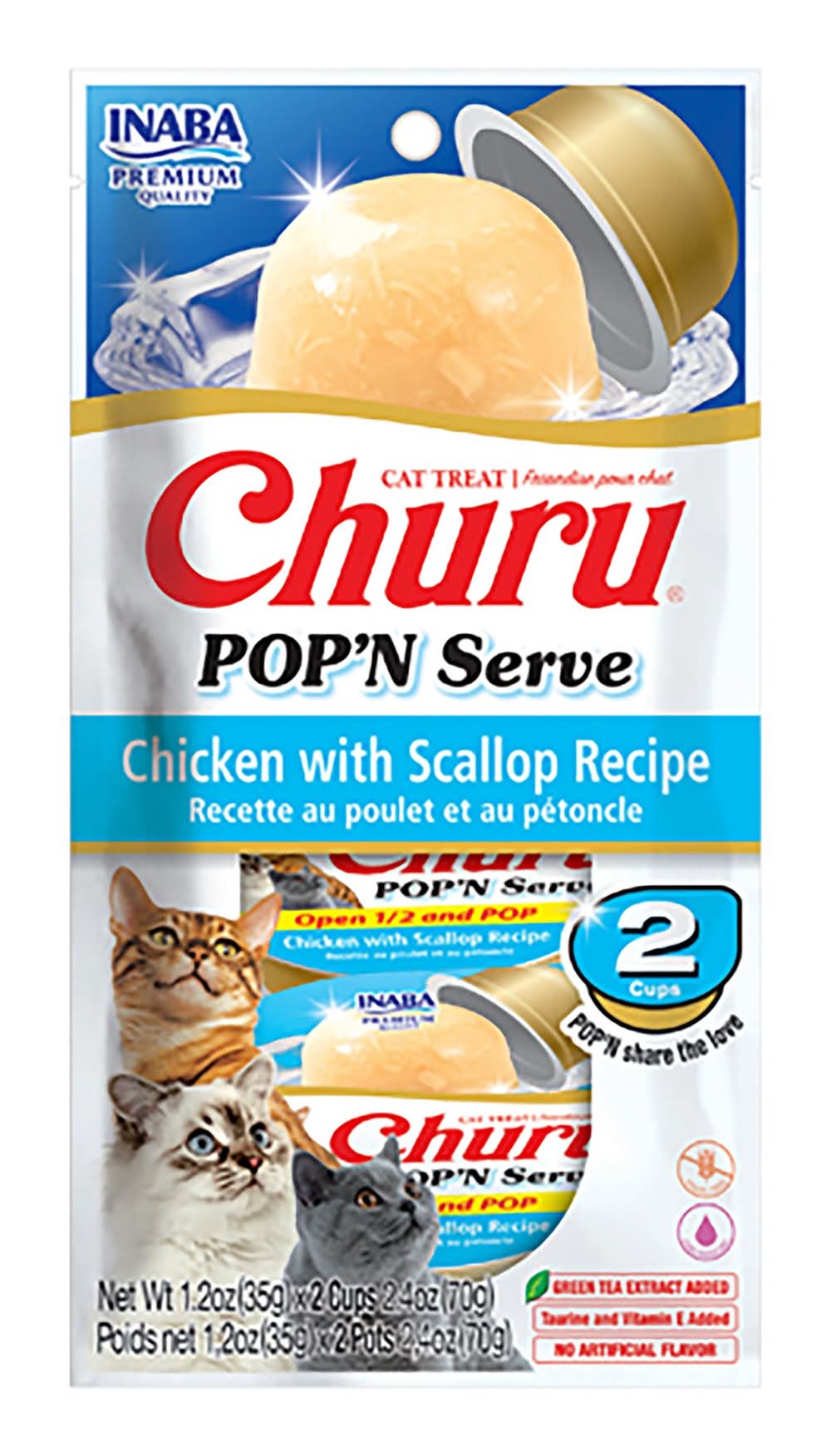 Inaba Churu POP'N Serve Cat Treats - 2.4 Oz (Flavor: Chicken & Scallop, Size: 2 Count)