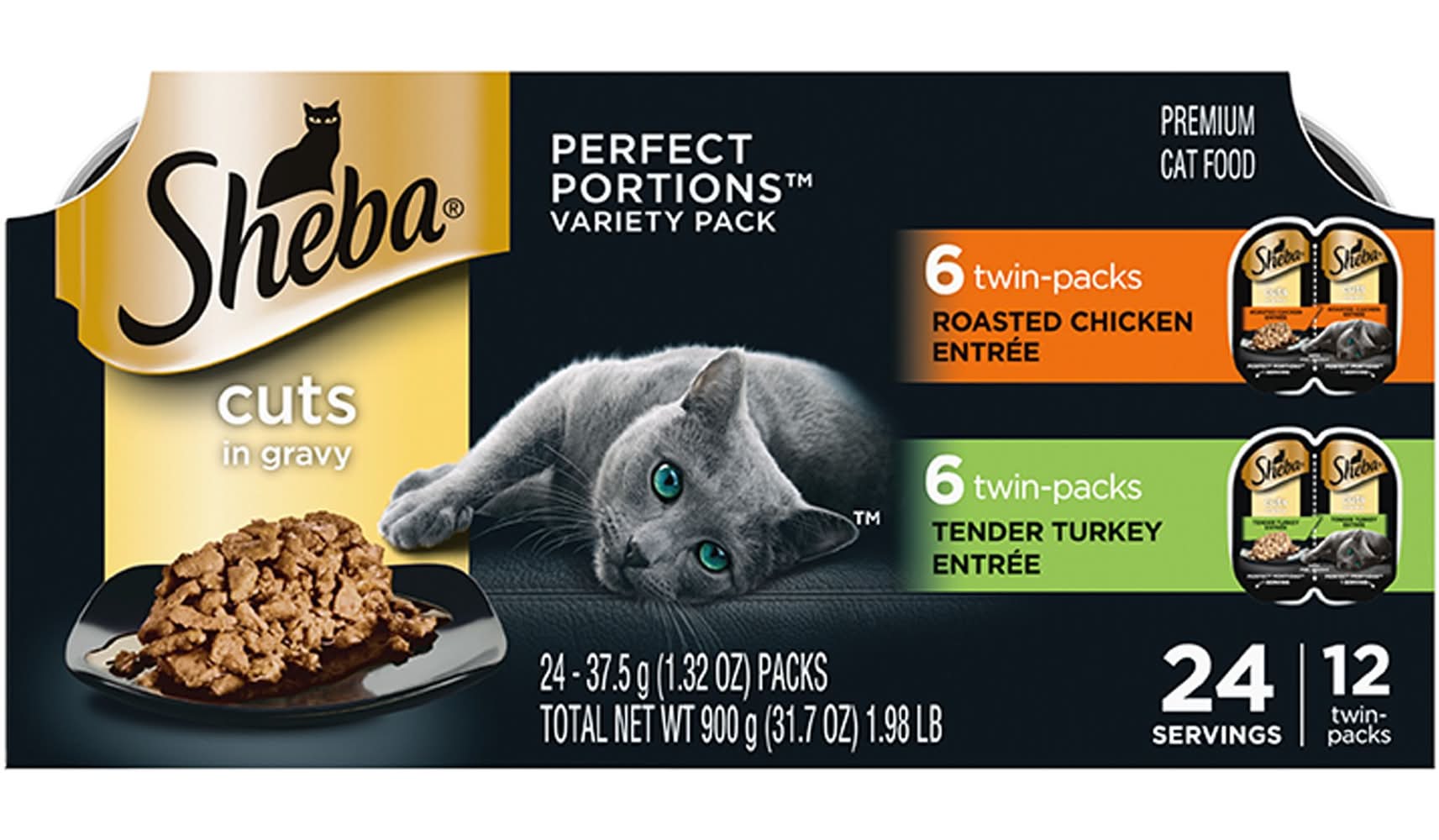 Sheba® Perfect Portions Adult Wet Cat Food - Cuts in Gravy, Variety Pack, 12 CT, 31.7 OZ (Flavor: Chicken & Turkey, Color: Assorted, Size: 24 Count)