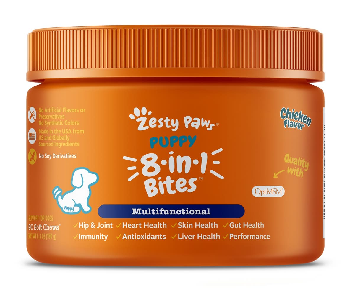 Zesty Paws 8-in-1 Multivitamin Bites for Puppy - Chicken Flavor - 90 Ct (Color: Orange, Size: 90 Count)