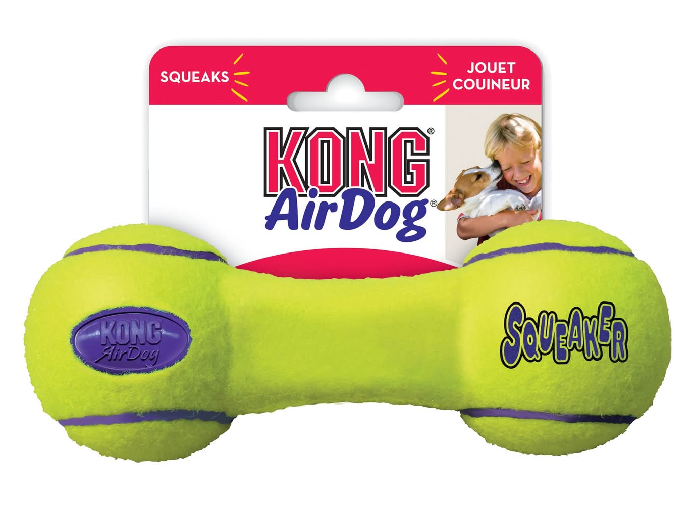 KONG® AirDog® Dumbbell Squeaker Dog Toy (Color: Yellow, Size: Small)